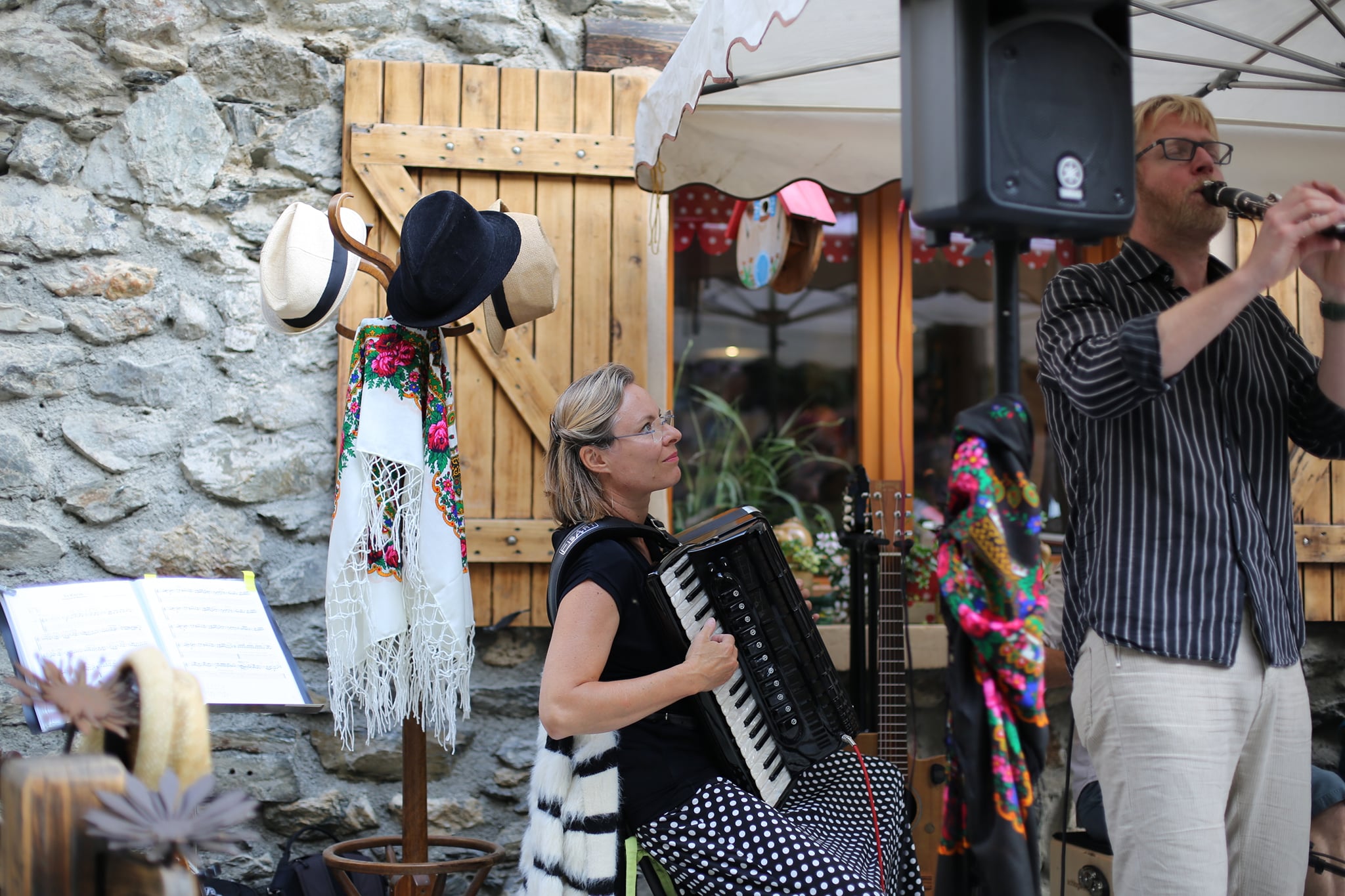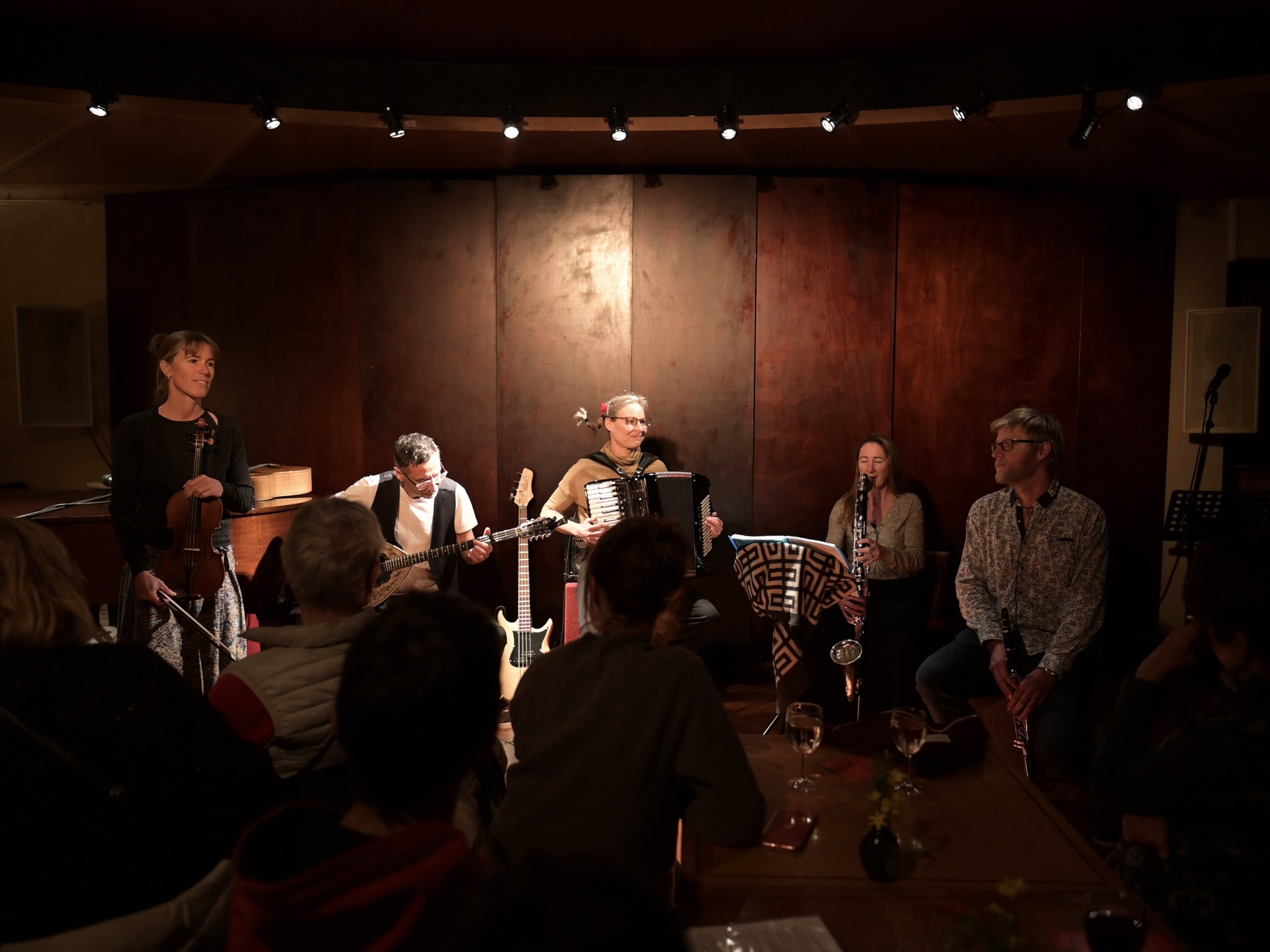 6 musiciens qui font résonner des musiques aux accents traditionnels: la musique Klezmer et des Balkans.